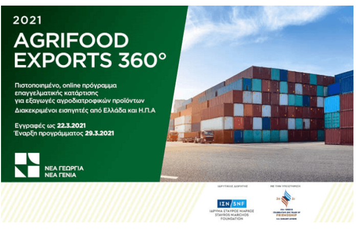 Ένα χρήσιμο εργαλείο επαγγελματικής κατάρτισης έχουν από σήμερα στη διάθεσή τους οι αγρότες. Συγκεκριμένα, άνοιξε η πλατφόρμα για εγγραφές στο πιστοποιημένο πρόγραμμα «AGRIFOOD EXPORTS 360°» το οποίο αφορά εξαγωγές αγροδιατροφικών προϊόντων. Το πρόγραμμα υλοποιείται για δεύτερη χρονιά από τον οργανισμό «Νέα Γεωργία Νέα Γενιά», μέσω της ιδρυτικής δωρεάς του Ιδρύματος Σταύρος Νιάρχος (ΙΣΝ). Επίσης, χρηματοδοτείται επίσης από χορηγία της Πρεσβείας των Η.Π.Α., υποστηρίζεται θεσμικά από το Σύνδεσμο Εξαγωγέων (ΣΕΒΕ) και βρίσκεται υπό την αιγίδα του Enterprise Greece.