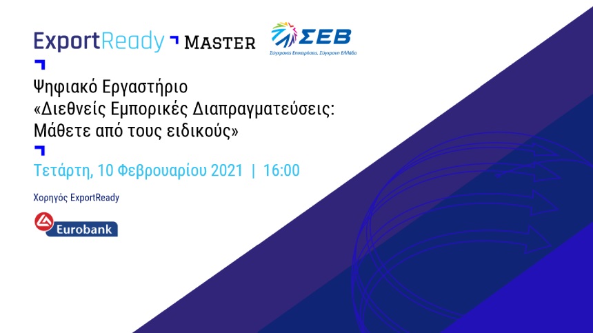 Ο ΣΕΒ διοργανώνει την Τετάρτη 10 Φεβρουαρίου 2021, και ώρα 16:00 μ.μ. Ψηφιακό Εργαστήριο με θέμα: «Διεθνείς Εμπορικές Διαπραγματεύσεις: Μάθετε από τους ειδικούς».