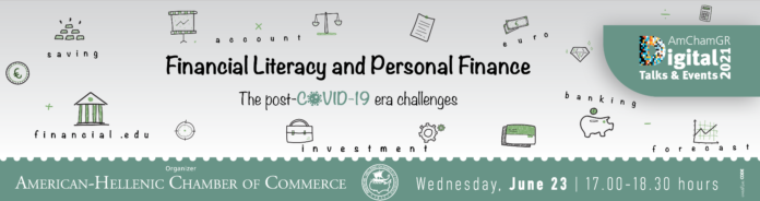 Δευτέρα 05.07.2021 | Με επιτυχία πραγματοποιήθηκε η ψηφιακή συζήτηση με τίτλο «Financial Literacy & Personal Finance: The post-Covid-19 era challenges», που διοργάνωσε την Τετάρτη 23 Ιουνίου, η Επιτροπή Εκπαίδευσης, Καινοτομίας και Επιχειρηματικότητας του Ελληνο-Αμερικανικού Εμπορικού Επιμελητηρίου, με στόχο τη δημιουργία μιας νέας γενιάς ενημερωμένων και οικονομικά υπεύθυνων πολιτών.