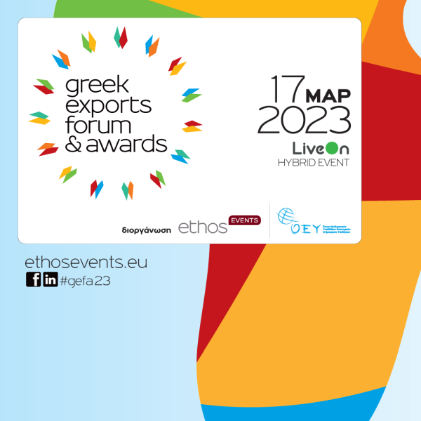 Η Τελετή Απονομής των Greek Exports Awards 2023 θα διεξαχθεί το βράδυ της Παρασκευής 17 Μαρτίου, με φυσική παρουσία στο ξενοδοχείο Athenaeum InterContinental και online μέσα από το LiveOn Expo Complex.