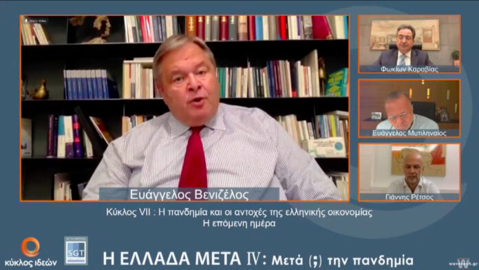 Ο διευθύνων σύμβουλος της Eurobank, Φωκίων Καραβίας, ο πρόεδρος και Διευθύνων Σύμβουλος, του ομίλου MYTILINEOS, Ευ. Μυτιληναίος και ο πρόεδρος του Σ.Ε.Τ.Ε., Γιάννης Ρέτσος, κατά την ομιλίας τους στο συνέδριο του “Κύκλου Ιδεών” του Ευάγγελου Βενιζέλου, για την Ελλάδα μετά την πανδημία και με θέμα τις αντοχές της ελληνικής οικονομίας την επόμενη μέρα ανέπτυξαν ενδιαφέρουσες απόψεις σχετικά με το οικονομικό άμεσο μέλλον της Ελλάδας και τις δυνατότητες ανάκαμψης.