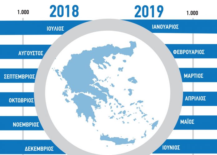 Όπως παρατηρείται στο γράφημα (3), το εμπορικό ισοζύγιο του Ιουνίου του 2019 ήταν ευνοϊκότερο κατά 22,93% σε σχέση με τον αντίστοιχο μηνά του 2018.