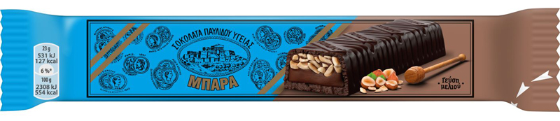 Η αυθεντική σοκολάτα Υγείας Παυλίδη γίνεται μπάρα και ενώνεται με ξηρούς καρπούς και κρέμα σε δύο γεύσεις την Υγείας Παυλίδη μπάρα με φουντούκια και κρέμα κακάο που έχει γεύση μελιού και προσφέρει μια γευστική εμπειρία που συνδυάζει ξηρό καρπό και την αίσθηση του μελιού σε μια κρέμα και την Υγείας Παυλίδη μπάρα με αμύγδαλα και κρέμα με γεύση γιαουρτιού και πορτοκαλιού που ξυπνάει στις αισθήσεις μέσα από τα αρώματα του πορτοκαλιού και του αμύγδαλου σε μια πρωτότυπη γευστική σύνθεση.