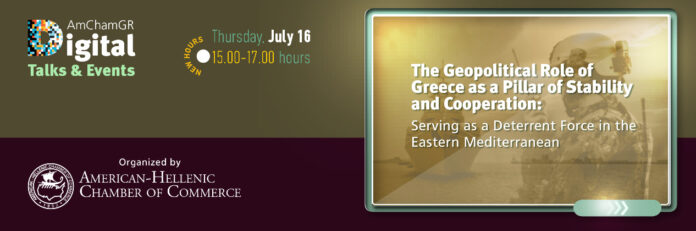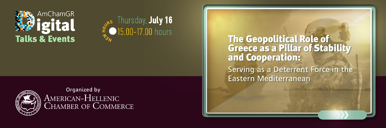 Με ιδιαίτερη επιτυχία το Ελληνο-Αμερικανικό Εμπορικό Επιμελητήριο διοργάνωσε την ψηφιακή συζήτηση με θέμα: «Ο ΓΕΩΠΟΛΙΤΙΚΟΣ ΡΟΛΟΣ ΤΗΣ ΕΛΛΑΔΑΣ ΩΣ ΠΥΛΩΝΑΣ ΣΤΑΘΕΡΟΤΗΤΑΣ ΚΑΙ ΣΥΝΕΡΓΑΣΙΑΣ ΑΛΛΑ ΚΑΙ ΩΣ ΠΑΡΑΓΟΝΤΑΣ ΑΠΟΤΡΕΠΤΙΚΗΣ ΙΣΧΥΟΣ ΣΤΗΝ ΠΕΡΙΟΧΗ ΤΗΣ ΑΝΑΤΟΛΙΚΗΣ ΜΕΣΟΓΕΙΟΥ» η οποία πραγματοποιήθηκε την Πέμπτη 16 Ιουνίου 2020 στο πλαίσιο των ψηφιακών εκδηλώσεων AmChamGR Digital Talks & Events.