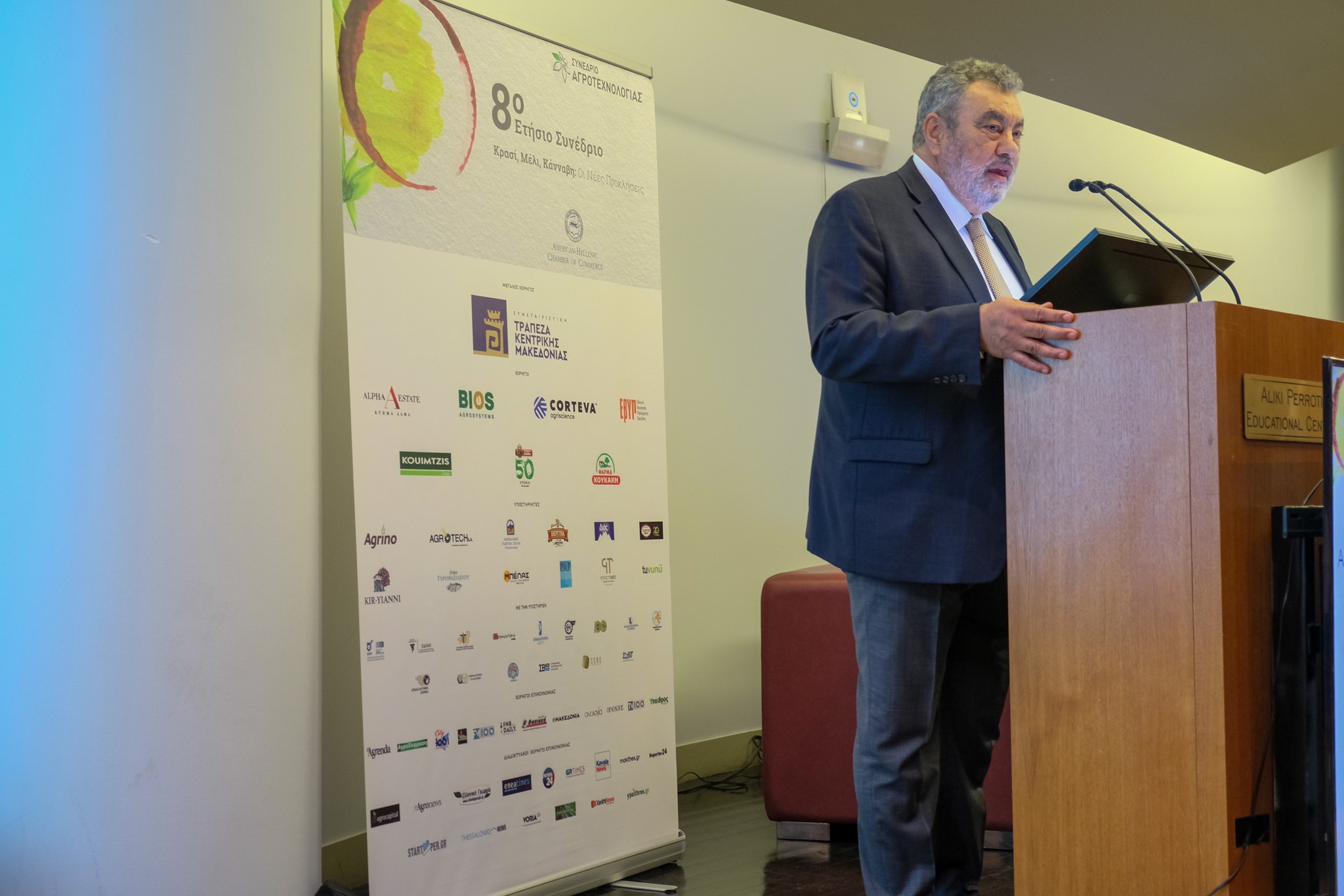 Στον χαιρετισμό του ο Πρόεδρος της Αμερικανικής Γεωργικής Σχολής, Πάνος Κανέλλης, τόνισε την σημασία και αξία των προϊόντων στα οποία εστίασε το φετινό συνέδριο Αγροτεχνολογίας.