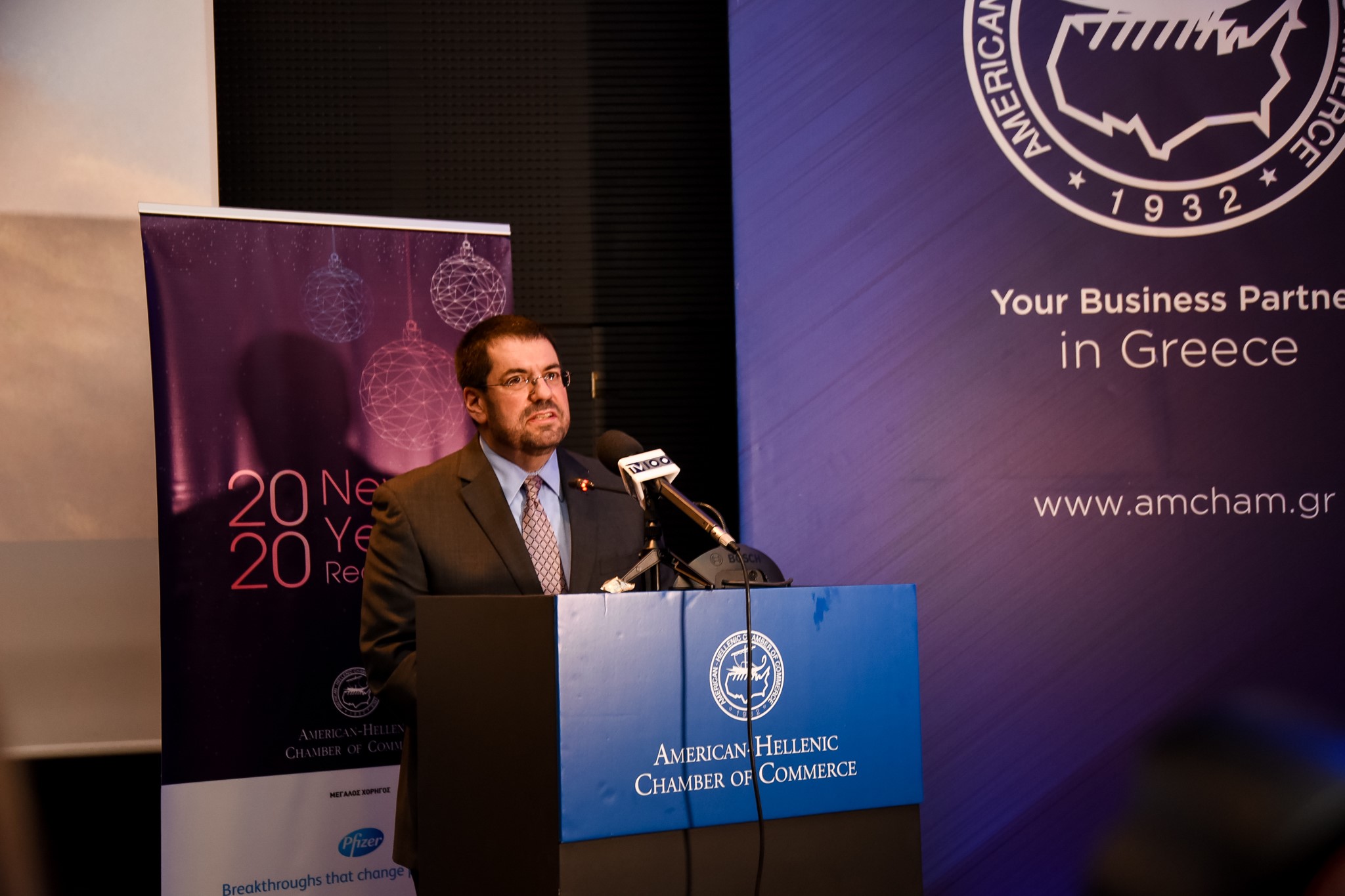 Ο χαιρετισμός του Επιτετραμμένου της Αμερικανικής Πρεσβείας στην Αθήνα, κ. David Burger, στον ακόλουθο σύνδεσμο: https://gr.usembassy.gov/dcm-david-burgers-remarks-at-the-amcham-new-years-reception-pita-cutting/