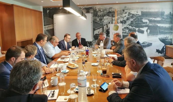 Συνάντηση με τον Υφυπουργό Εξωτερικών για την Οικονομική Διπλωματία Κώστα Φραγκογιάννη και τον Γενικό Γραμματέα Διεθνών Οικονομικών Σχέσεων και Εξωστρέφειας Γρηγόρη Δημητριάδη στο πλαίσιο της επίσκεψής τους στην 84η ΔΕΘ είχε το Διοικητικό Συμβούλιο του ΣΕΒΕ-Συνδέσμου Εξαγωγέων στα γραφεία του Συνδέσμου.