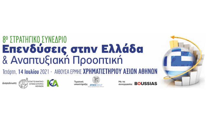 Το Επαγγελματικό Επιμελητήριο Αθηνών και το Ελληνικό Ινστιτούτο Επιχειρηματικότητας και Αειφόρου Ανάπτυξης, διοργανώνουν την Τετάρτη, 14 Ιουλίου 2021, στην αίθουσα “ΕΡΜΗΣ”, του Χρηματιστηρίου Αξιών Αθηνών, το Στρατηγικό Συνέδριο «Επενδύσεις στην Ελλάδα και Αναπτυξιακή Προοπτική 2021», το οποίο θα μεταδοθεί ζωντανά μέσω live streaming.