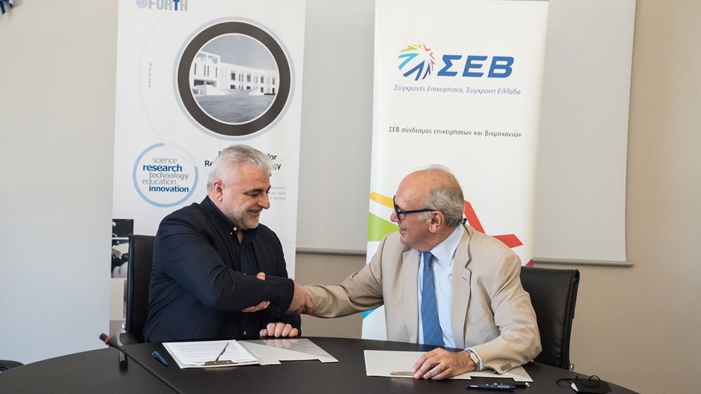 Συμφωνία Συνεργασίας με επίκεντρο την ανάπτυξη της καινοτομίας υπέγραψαν το Ίδρυμα Τεχνολογίας και Έρευνας (ΙΤΕ) και ο Σύνδεσμος Επιχειρήσεων και Βιομηχανιών (ΣΕΒ). Στόχος είναι η εμβάθυνση της συνεργασίας και η συστηματική υποστήριξη της εμπορικής και επιχειρηματικής αξιοποίησης των ερευνητικών αποτελεσμάτων και της επιστημονικής γνώσης. Η υπογραφή της συμφωνίας πραγματοποιήθηκε στην έδρα του ΙΤΕ, στο Ηράκλειο Κρήτης, παρουσία του γενικού γραμματέα Έρευνας και Καινοτομίας, καθηγητή Αθανάσιου Κυριαζή.