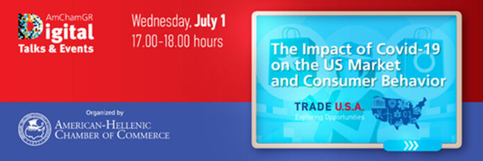Ολοκληρώθηκε με επιτυχία το διαδικτυακό σεμινάριο με τίτλο «The impact of COVID19 on the US Market and Consumer Behavior» που διοργάνωσε το Ελληνο-Αμερικανικό Εμπορικό Επιμελητήριο σε συνεργασία με το τμήμα διεθνούς εμπορίου TradeUSA στο πλαίσιο των ψηφιακών εκδηλώσεων AmchamGR Digital Talks&Events, την Τετάρτη 1 Ιουλίου 2020.
